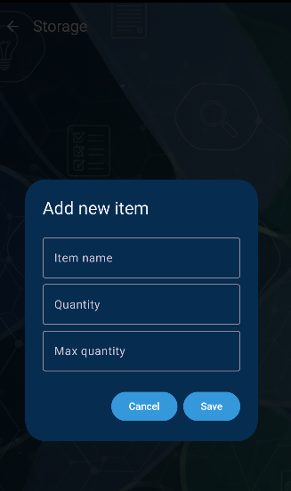 - Inventory System: Keep track of all tools and materials by name, description, and quantity. When something is used, just deduct it — your stock always stays up to date.